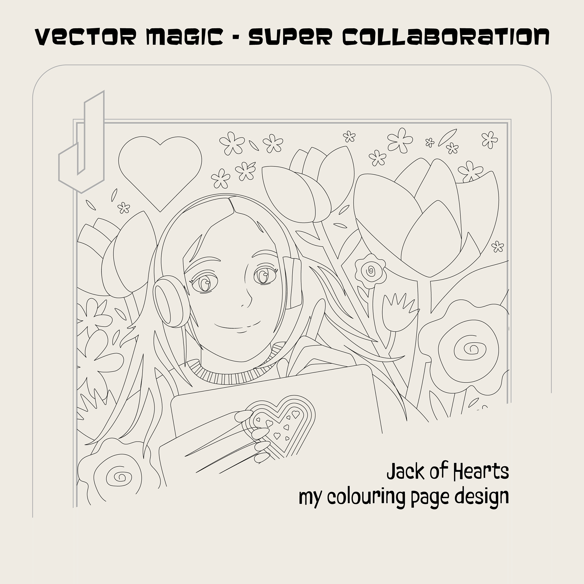 I teamed with Erin Hueston to do Jack of Hearts. As usual my problem was choosing a theme, a design, a subject. Finally I settled on something I can't physically do myself but imagine I would like to - a girl listening to music or an audio book, out in nature drawing on a tablet. Is there a better way to spend time?