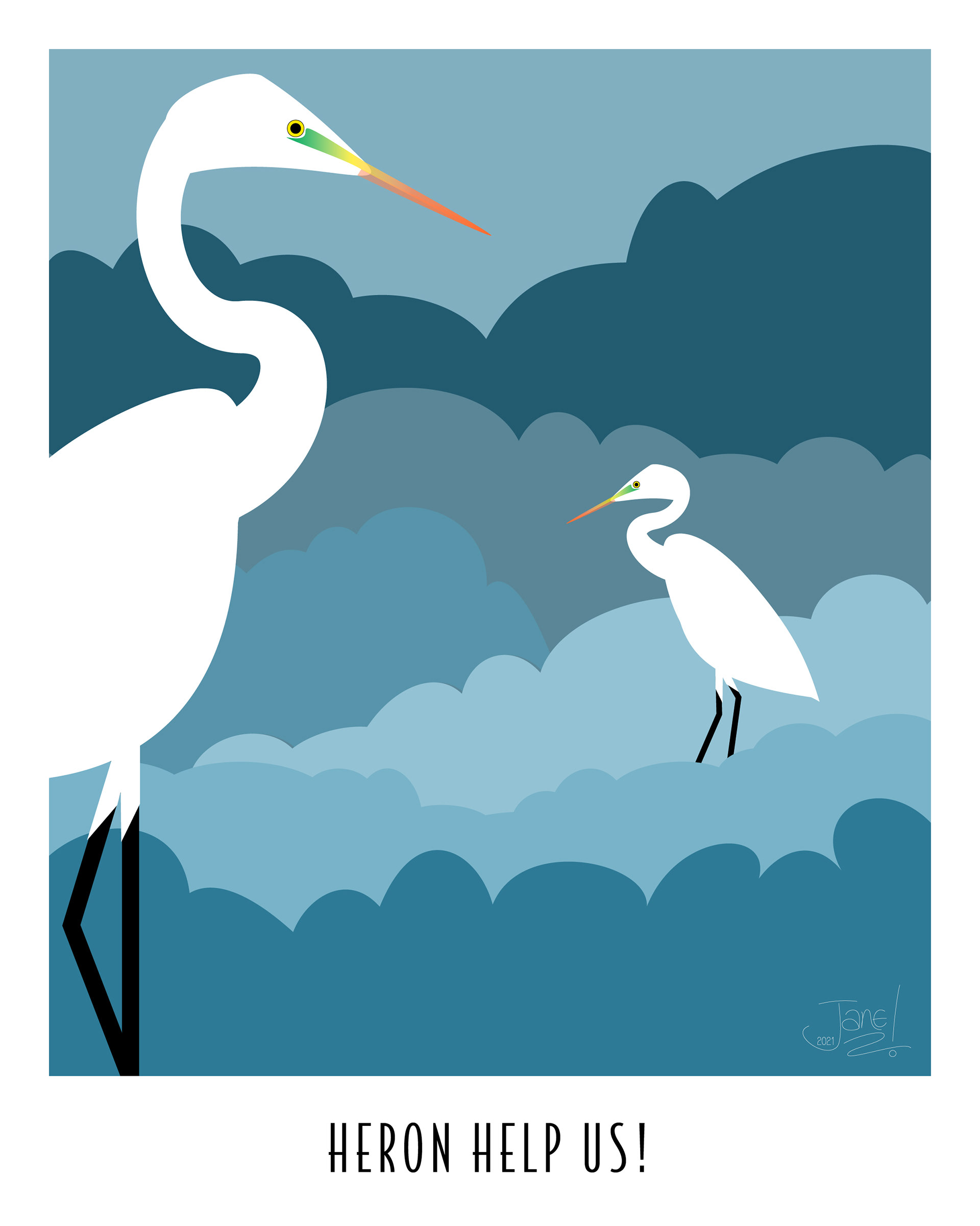 I'd recently been reading about the myriad climate events over the last few weeks, thinking to myself, "Heaven help us," which became "Heron help us!"