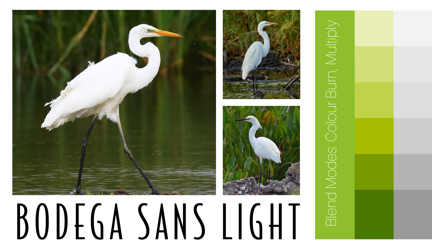 I found some photo references to help with the general shape of the heron. And rather than immediately starting with colour, I worked with shades of grey. I chose one green shade and experimented with Blend Modes to create the tree colours.
